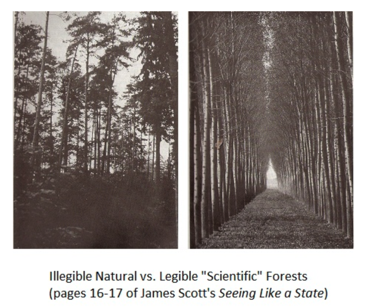 James C. Scottâs âSeeing Like A Stateâ is about government as slop. Just take in metrics and output policies without caring about local circumstances, traditions, etc. Left is not slop, right is ~slop (still pretty mind you, because the individual trees are not slop)
